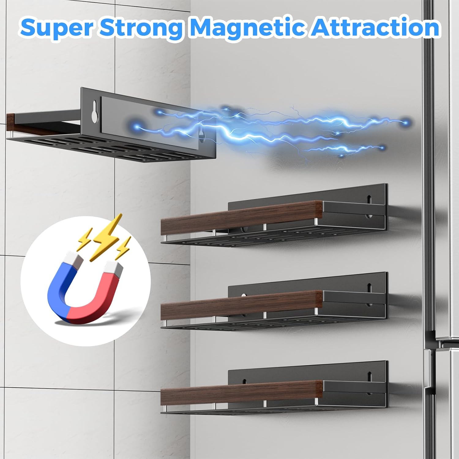 Walnut Magnetic Spice organizer for Refrigerator Wall Mount Spice Rack Magnetic Fridge Shelf Spice Jar Seasoning Organizer (4 PSC)