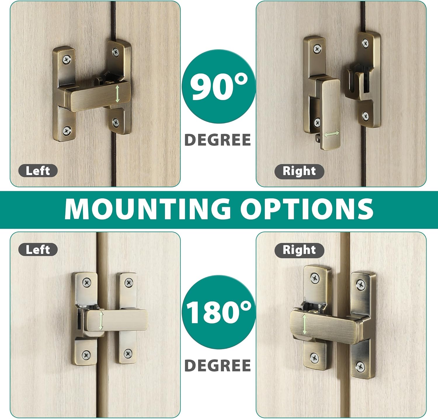 • UPGRADED GATE LATCH: This door lock can be mounted at 180 degree, also can be mounted at 90° right angles, providing space-saving functionality.