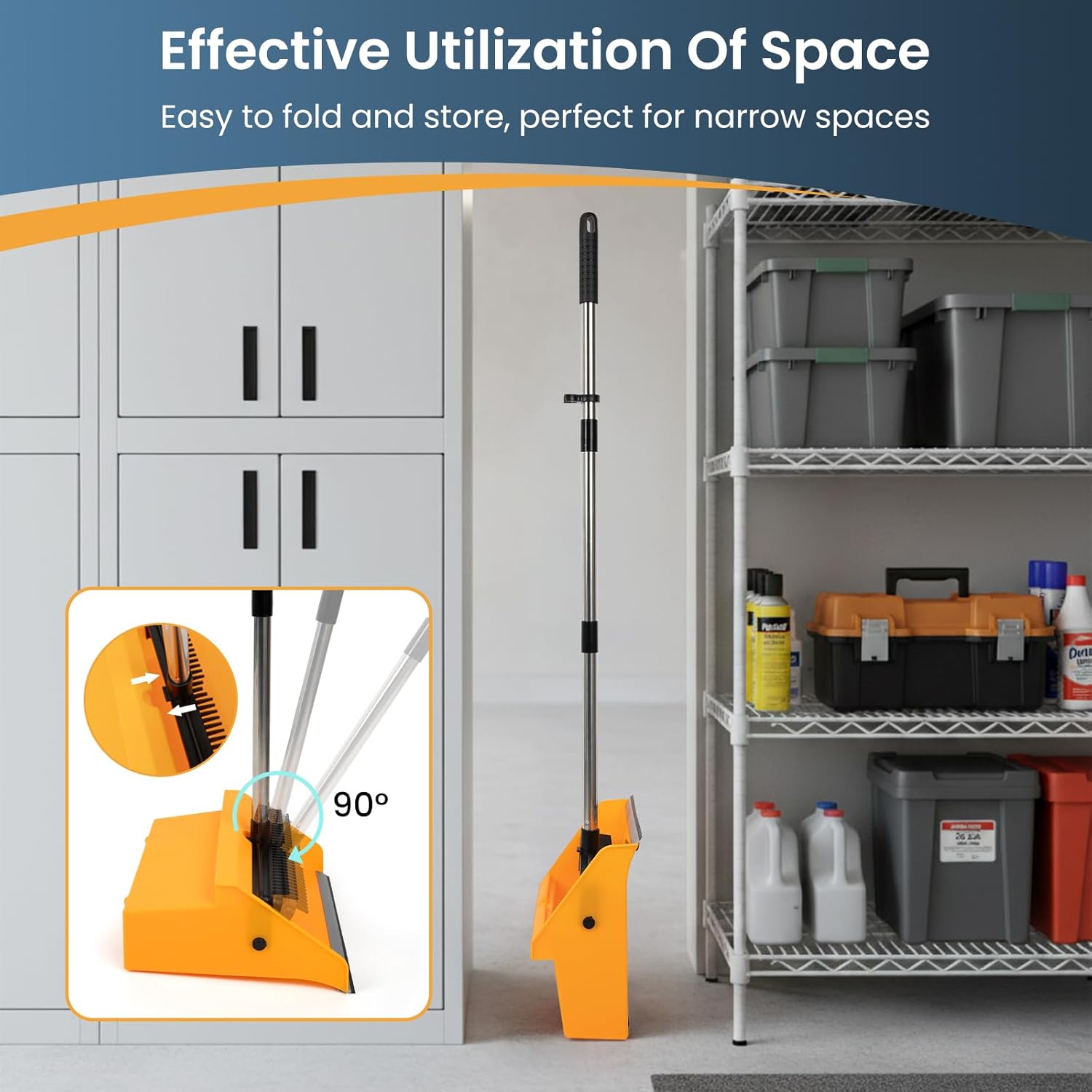 - Upright Dustpan Saves Space:The standing dustpan collection tray is rotatable, which helps to clean and transport collected dust and debris without overflow. The clip on function allows the dustpan to stand upright and save space for storage! Keep your home or workspace clean and tidy