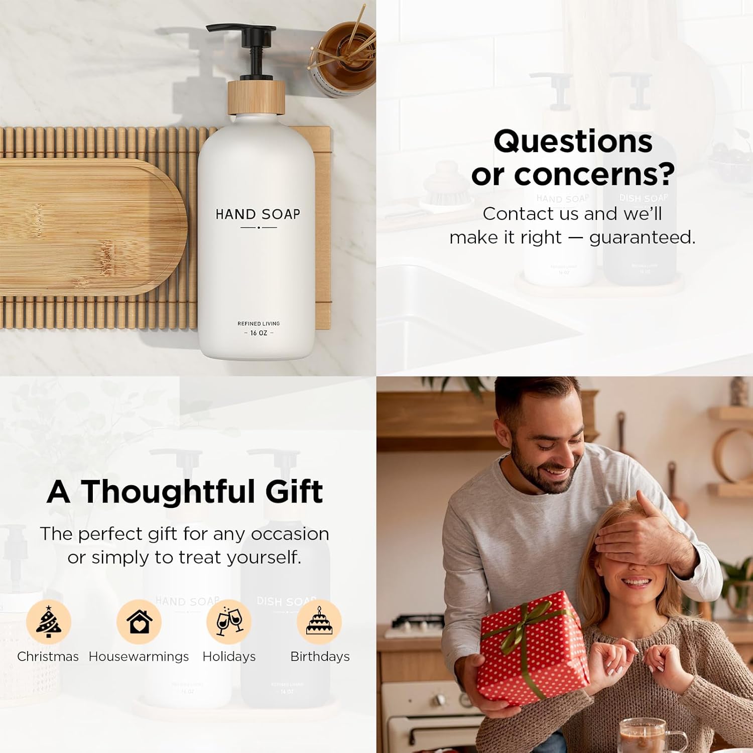 - 【CLEARLY LABELED GLASS BOTTLES 】– Two 16oz bottles printed with “Dish Soap” and “Hand Soap” for instant identification. Stylish and practical for any kitchen.