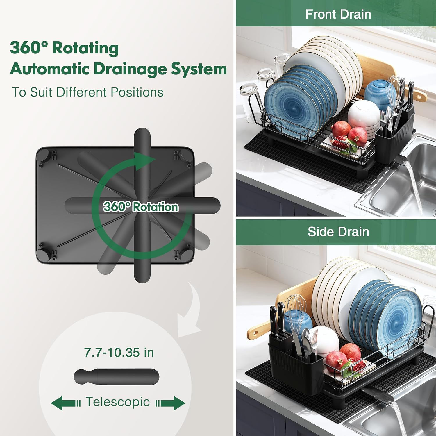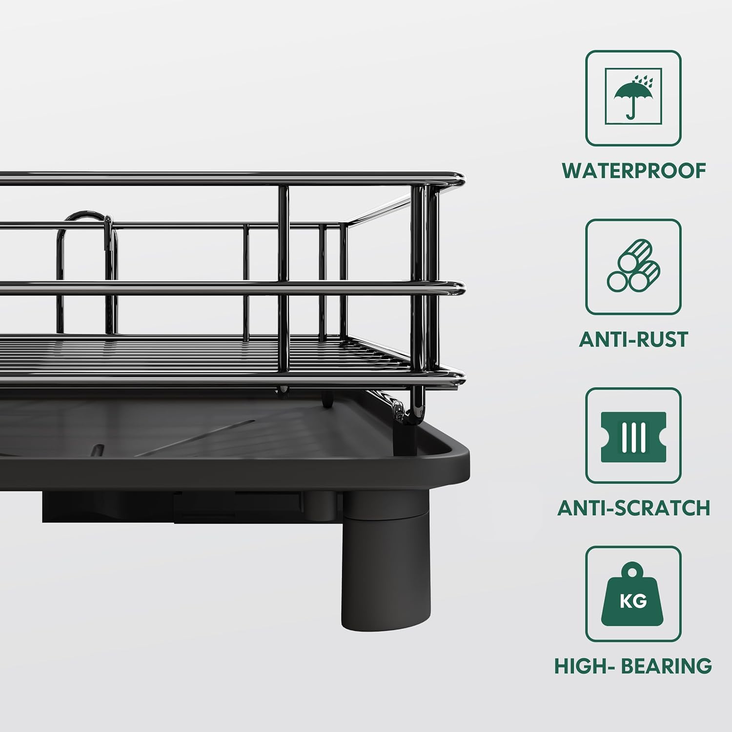 - ✨Modern Black Dish Dryer Rack: Smudge-resistant black dish drying rack blends seamlessly. Easy wipe finish stays clean, no stains, no scrubbing