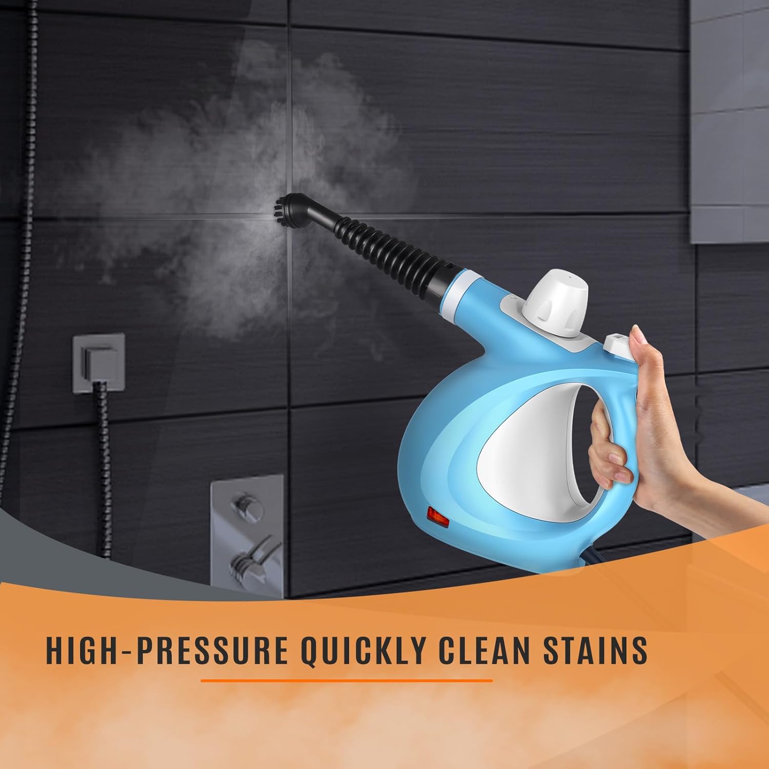 Pressurized Handheld Multi-Surface Natural Steam Cleaner with 12 pcs Accessories, Multi-Purpose Steamer for Home Use, Steamer for Cleaning Floor, Upholstery, Grout and Car (Blue)
