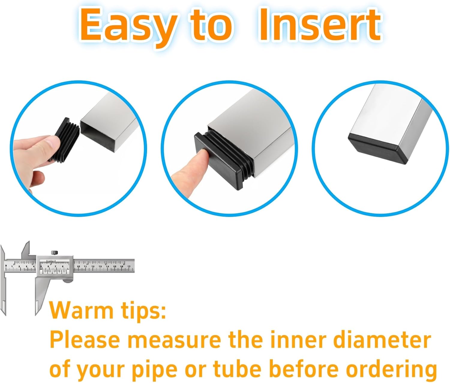 - Designed to Perfect Fit pipe tubing (Inner Length). The outside Length of the Furnigear Black Plastic Plugs End Caps . Used with 14-20 Gauge Tube Wall Thickness. (Important: Please measure the inner Length of your pipe before ordering.)