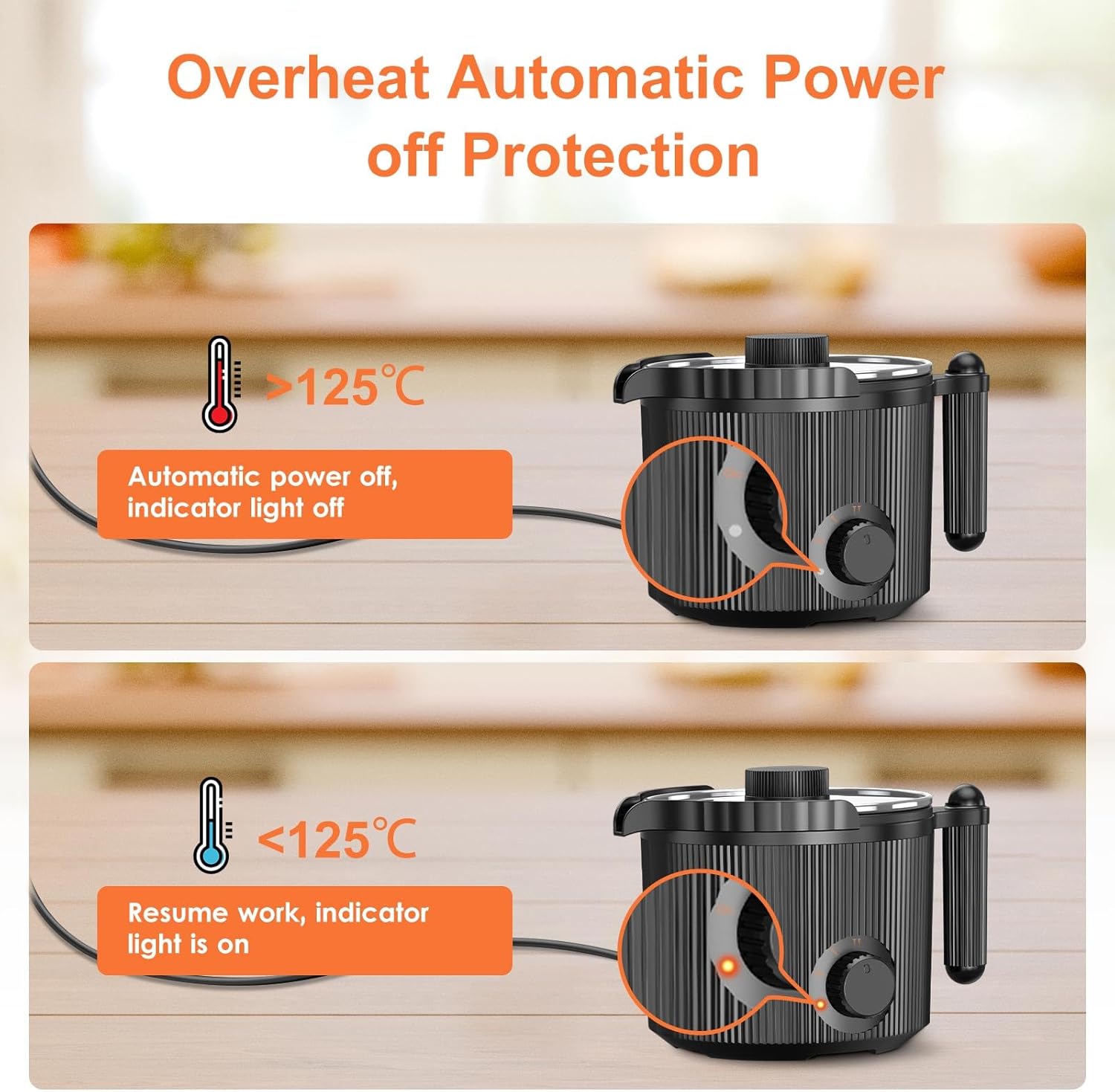 - Intelligent power-off protection system: The Venpow wax melter for candle making will automatically shut down when the temperature exceeds 125°C, and automatically restart when the temperature drops back to the safe range, preventing safety hazards caused by continuous heating of the wax melter for candle making.