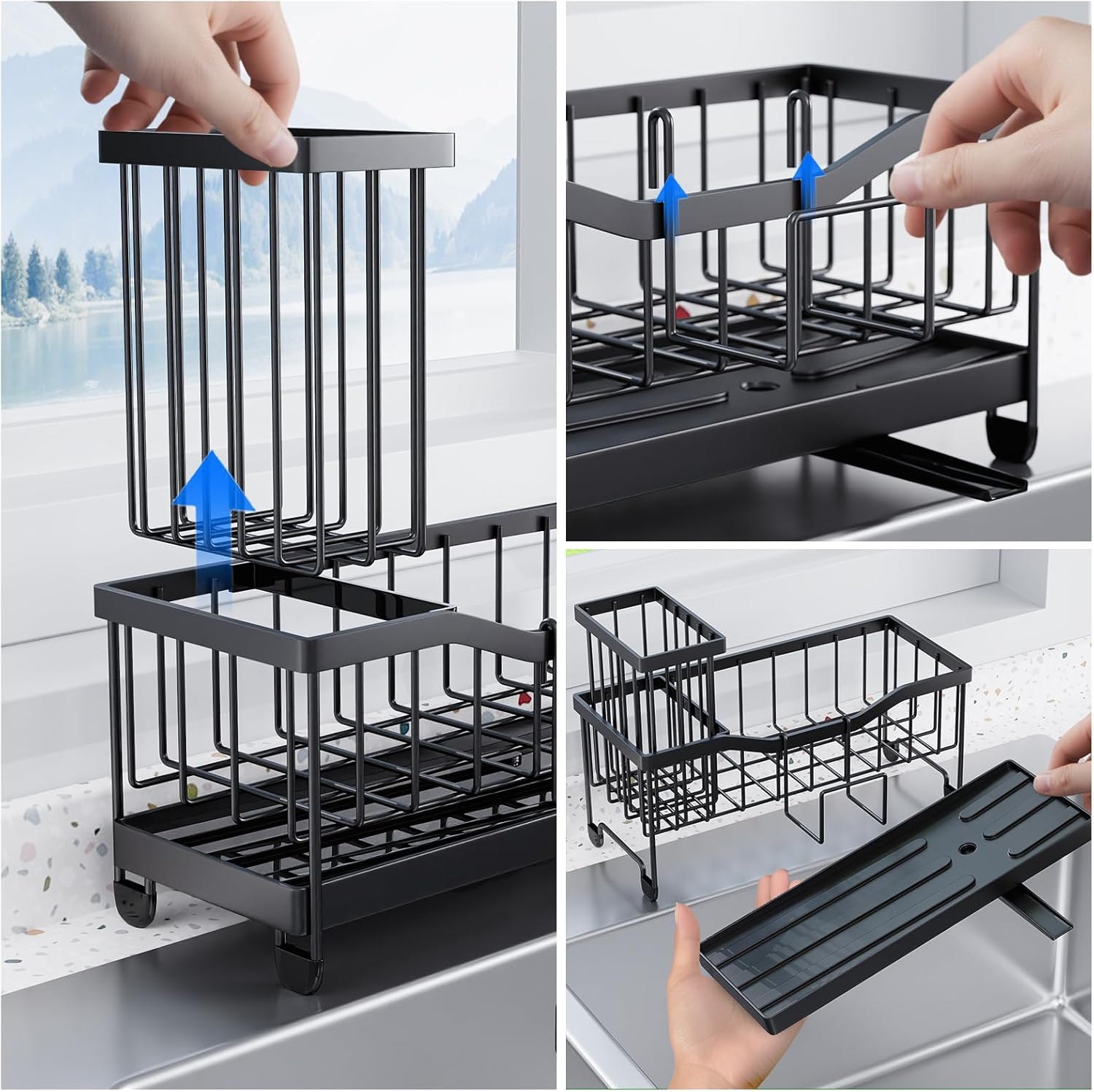 - 『Anti-Rust & Durable』The kitchen sponge holder is made of high-quality stainless steel. After polishing, it undergoes a rust-proof black coating treatment, which prevents rust, is durable, and prevents deformation. It can enhance the style and beauty of the kitchen no matter where it is placed on the sink.