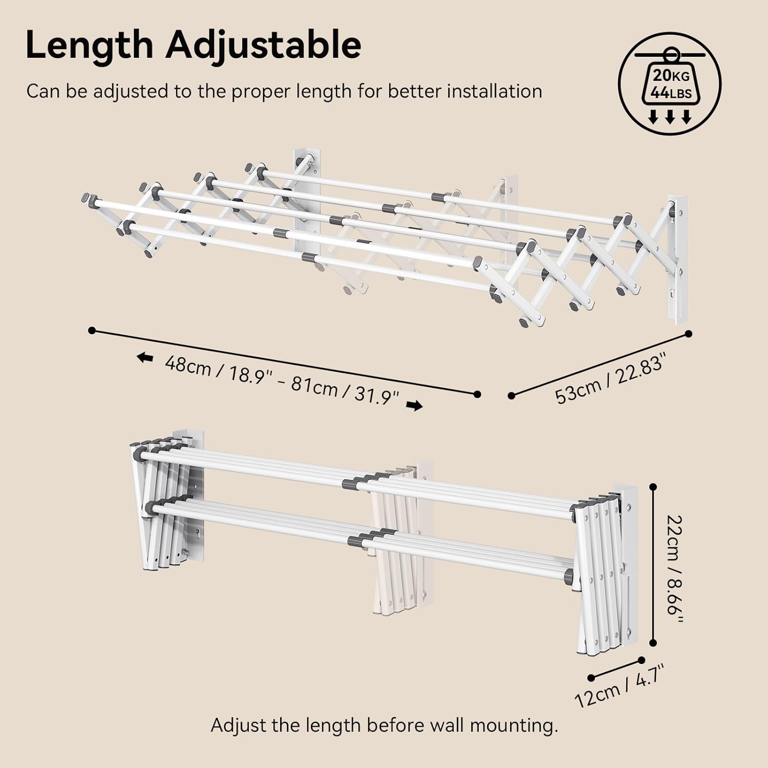 - Easy to Setup - The foldable drying rack for clothing needs simple assembly. Attach the rails to the rack and adjust the towel rack to needed length before mounting it on the wall.