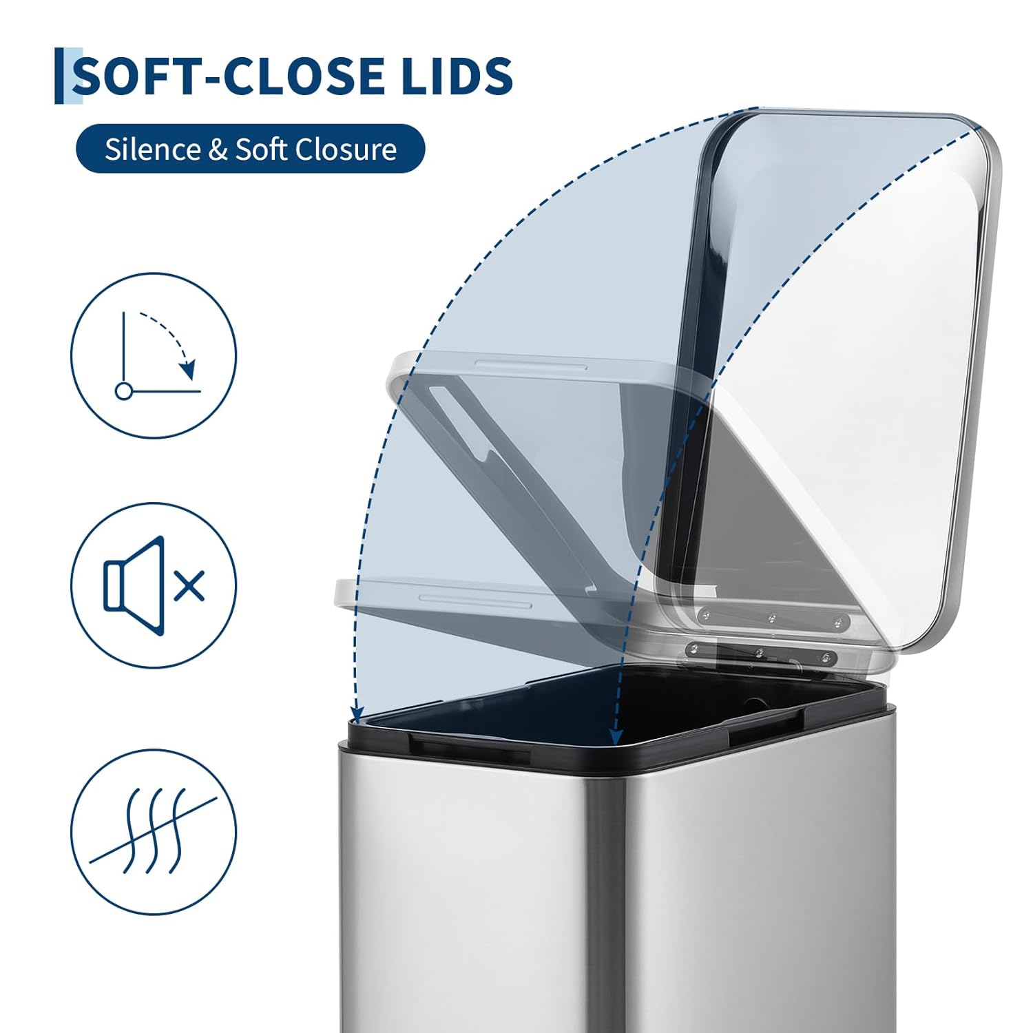 - 【Fingerprint-Proof & Durable】Brushed stainless steel construction resists scratches and smudges, keeping your kitchen garbage can looking polished. No more wiping fingerprints all day!