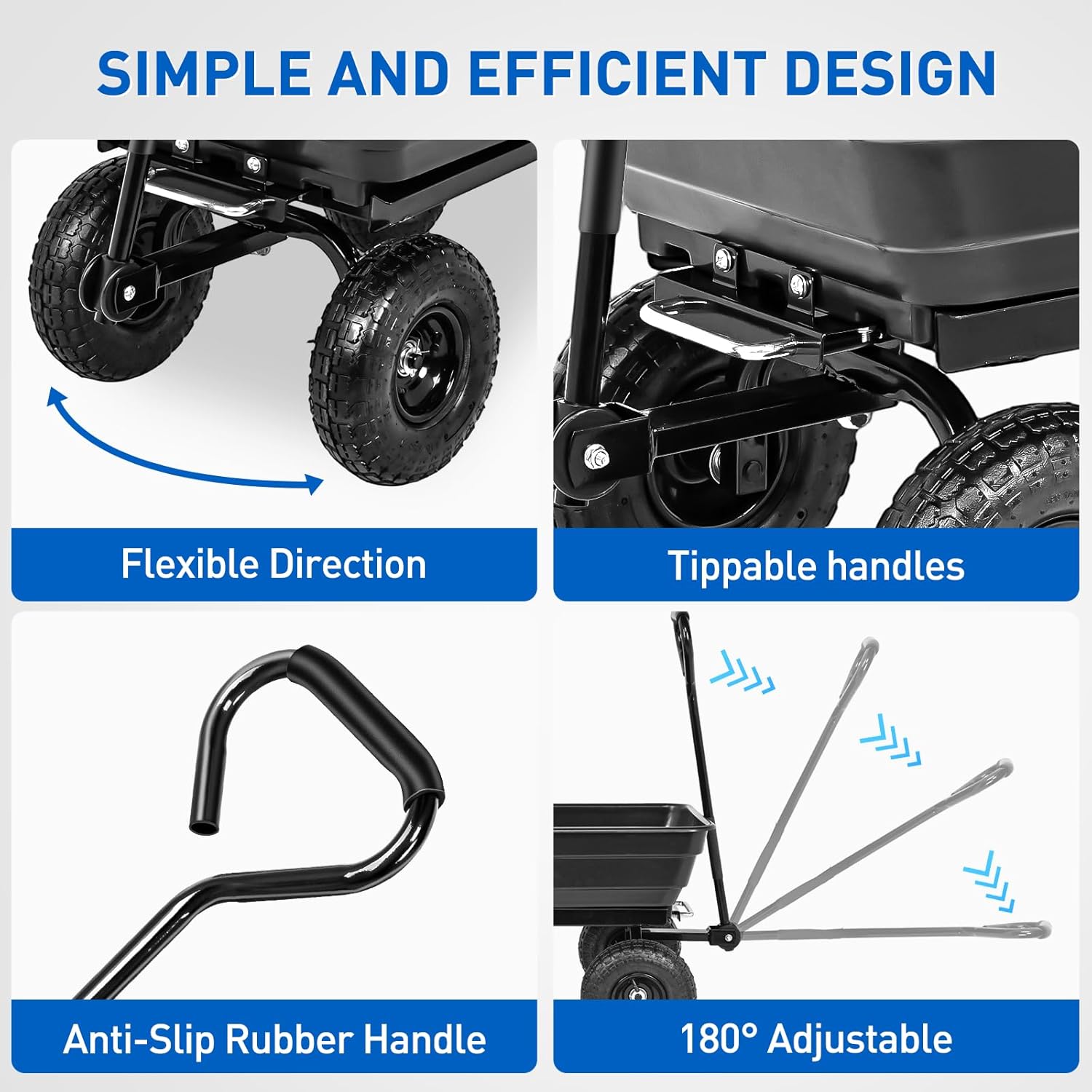 Yesker Garden Carts - 600lbs Dump Wagon with All Terrain Inflatable Wheels for Yard Lawn Farms Gardening - Heavy Duty Utility Outdoor Hauling Wheelbarrow