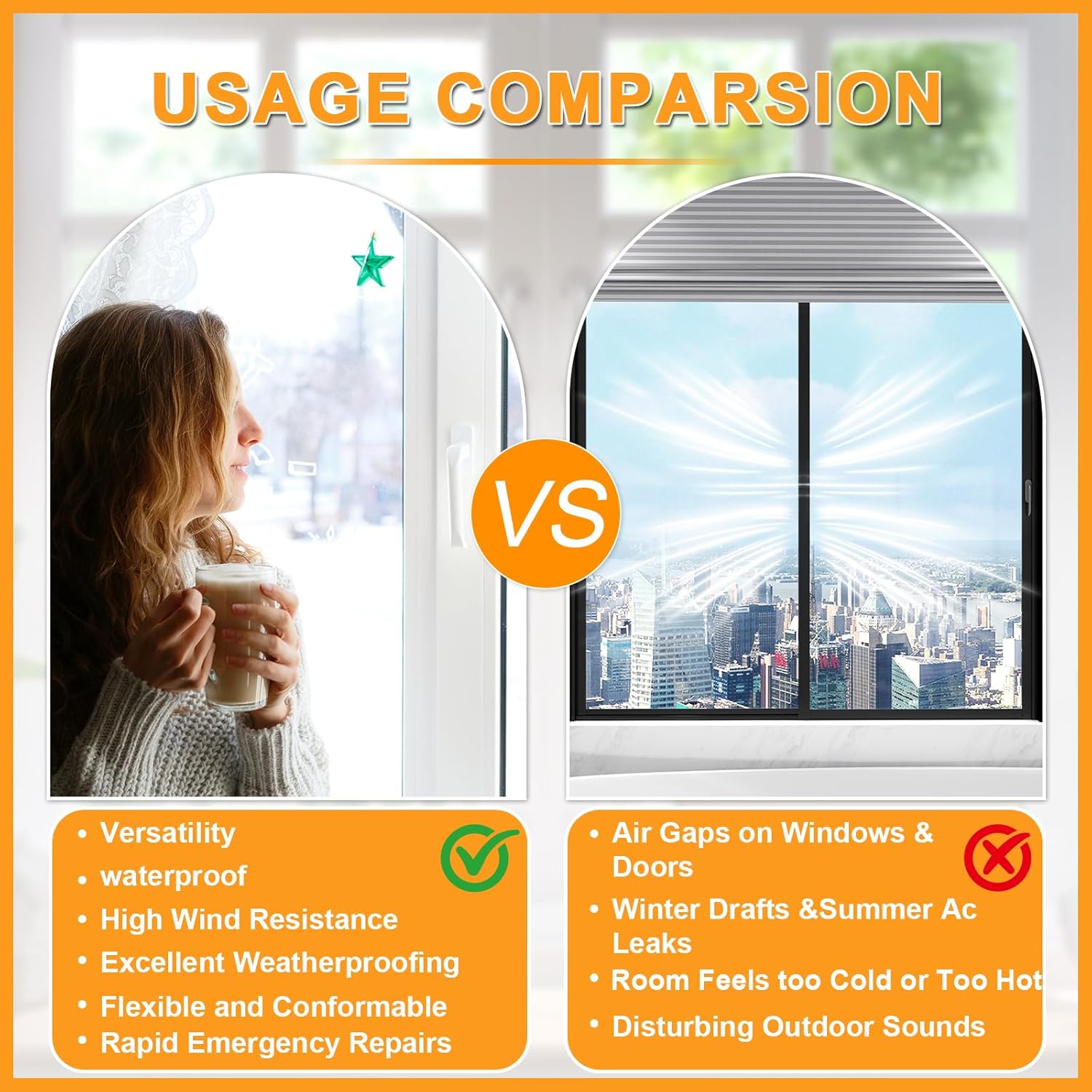 - 【Strong Adhesive but surface safe adesive】: weather sealing tape is made of high-quality, weather-resistant materials that can withstand extreme temperatures, moisture, and DIY repair to sealing on windows,doors. Sticks strongly while being residue-free, removable and surface-safe.