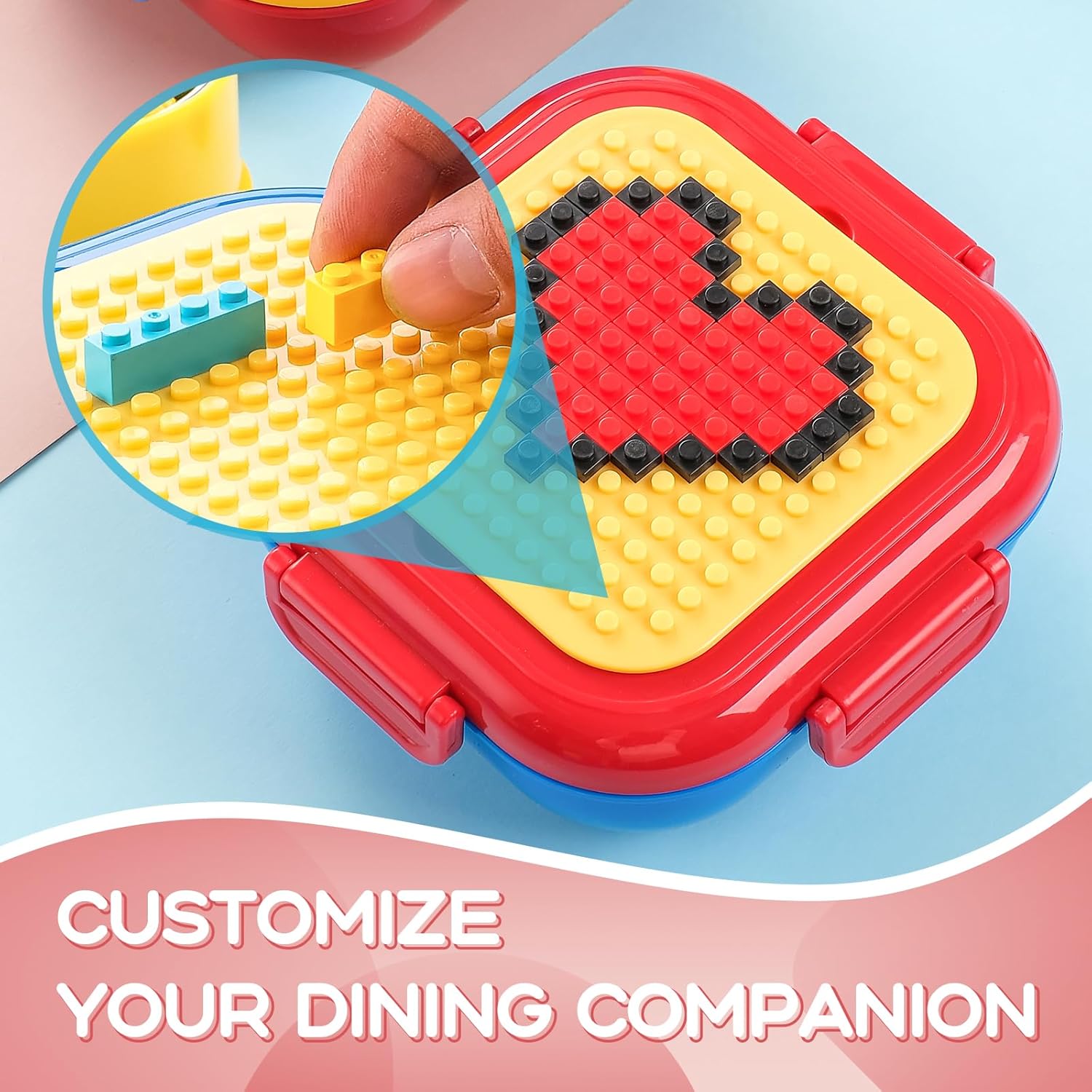 - Outstanding Design: The DIY building block box lid stimulates children's creativity, and the silicone seal prevents leakage. It features a large-capacity zoning design of 1400 ml, with the upper and lower layers separable