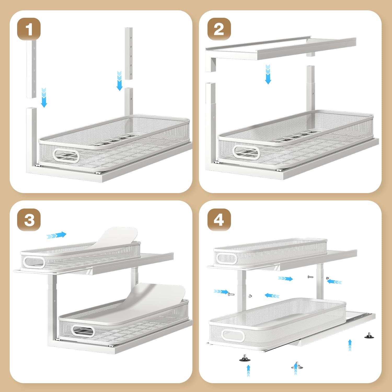 - 【Built to Last with a Sturdy Square Frame】 Our organizer is engineered with a robust 12mm x 12mm square tube frame, significantly sturdier than the common 8mm tubes found in many products. This durability ensures that your Under Sink Organizer can handle daily use with ease, providing lasting support and peace of mind.