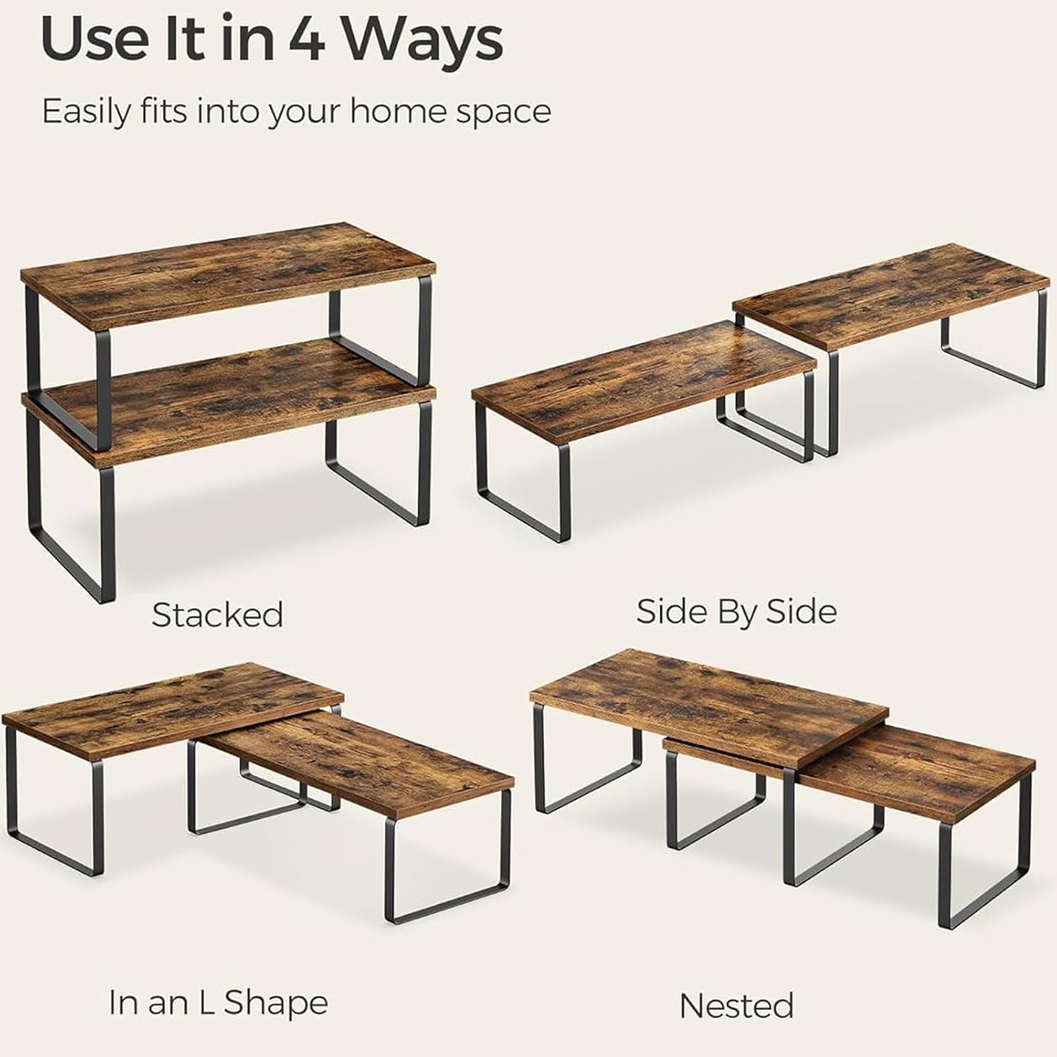 - VERSATILE STORAGE: Set of 2 stackable and expandable shelves perfect for organizing kitchen cabinets, countertops, and pantry spaces