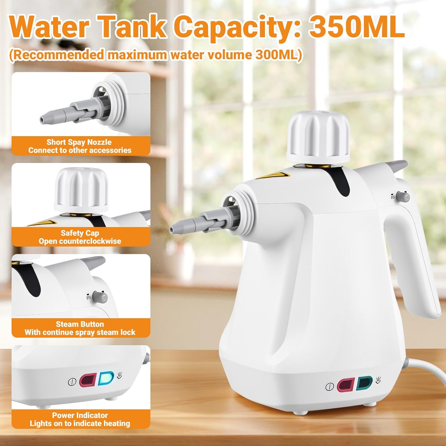 Pressurized Handheld Steam Cleaner with 11 pcs Accessories and Safety Lock, Multipurpose Steam Cleaner for Home, Portable Steamer for Cleaning Kitchen, Bathroom, Car, Floor, Furniture, Grout, Couch