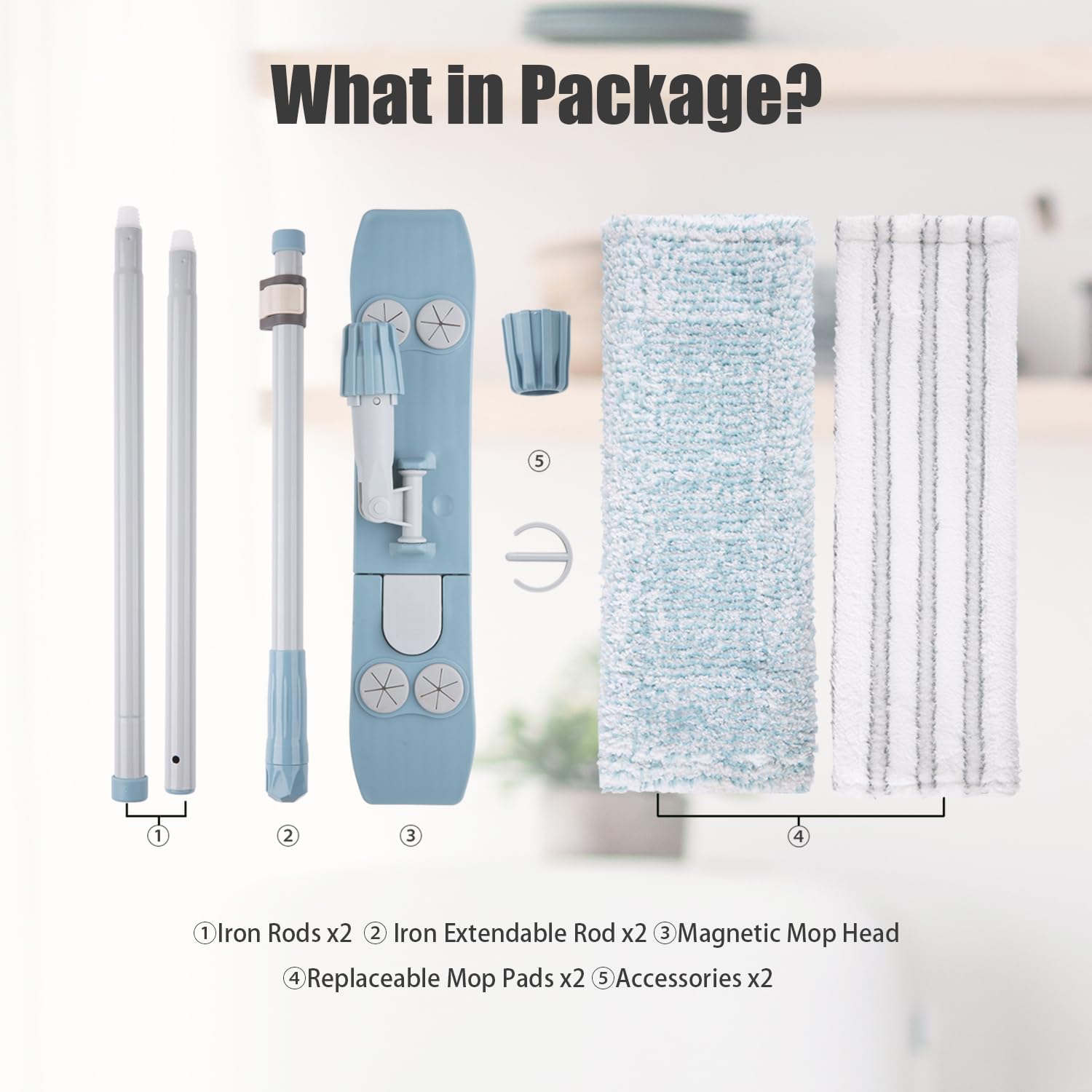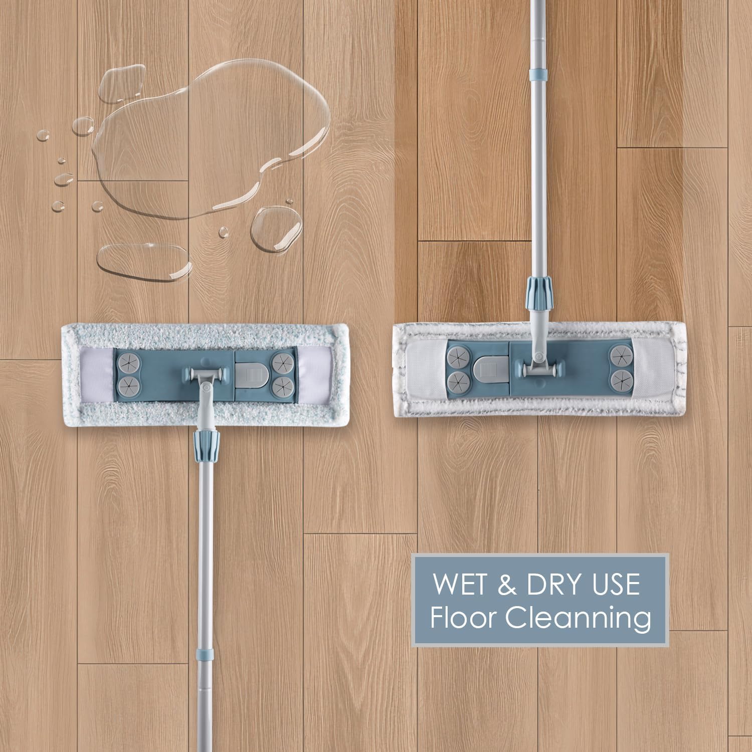 - 2 Pcs Polyester Mop Pad:Features two specialized reusable washable Mop pads: A Thick Mop Pad for superior dry sweeping & quick spill absorption; a Thin Mop Pad engineered for effective damp/wet mopping – delivering versatile cleaning performance.