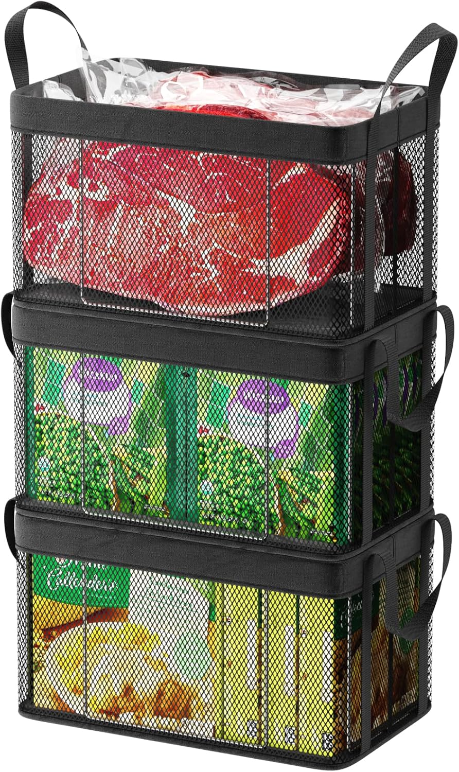 - Effortless Frozen Food Access: Grab the sturdy side handles to lift these freezer baskets effortlessly; No more digging through piles of frozen groceries to find what you need
