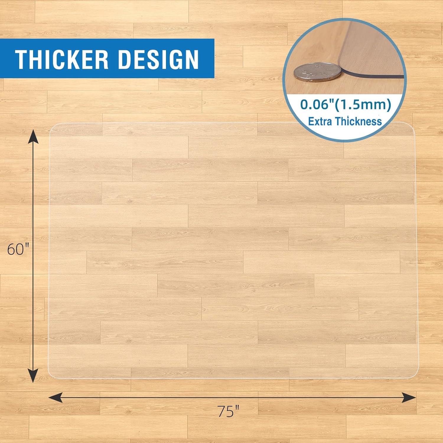 Clear Chair Mat, 75" x 60" Large Chair Mat for Hard Floors, Anti-Slip Desk Mat for Rolling Chair, Easy Glide Vinyl Floor Mat for Home Office Living Room, Clear