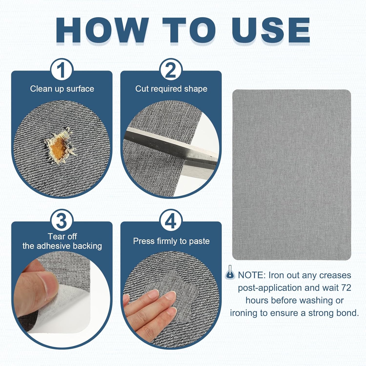 - Advantage: Our fabric repair patch tape is crafted from durable linen fabric, featuring an easy peel-and-stick design with a soft touch. Fabric patches are resistant to pilling and shrinking, machine washable for multiple uses while retaining its adhesive qualities.