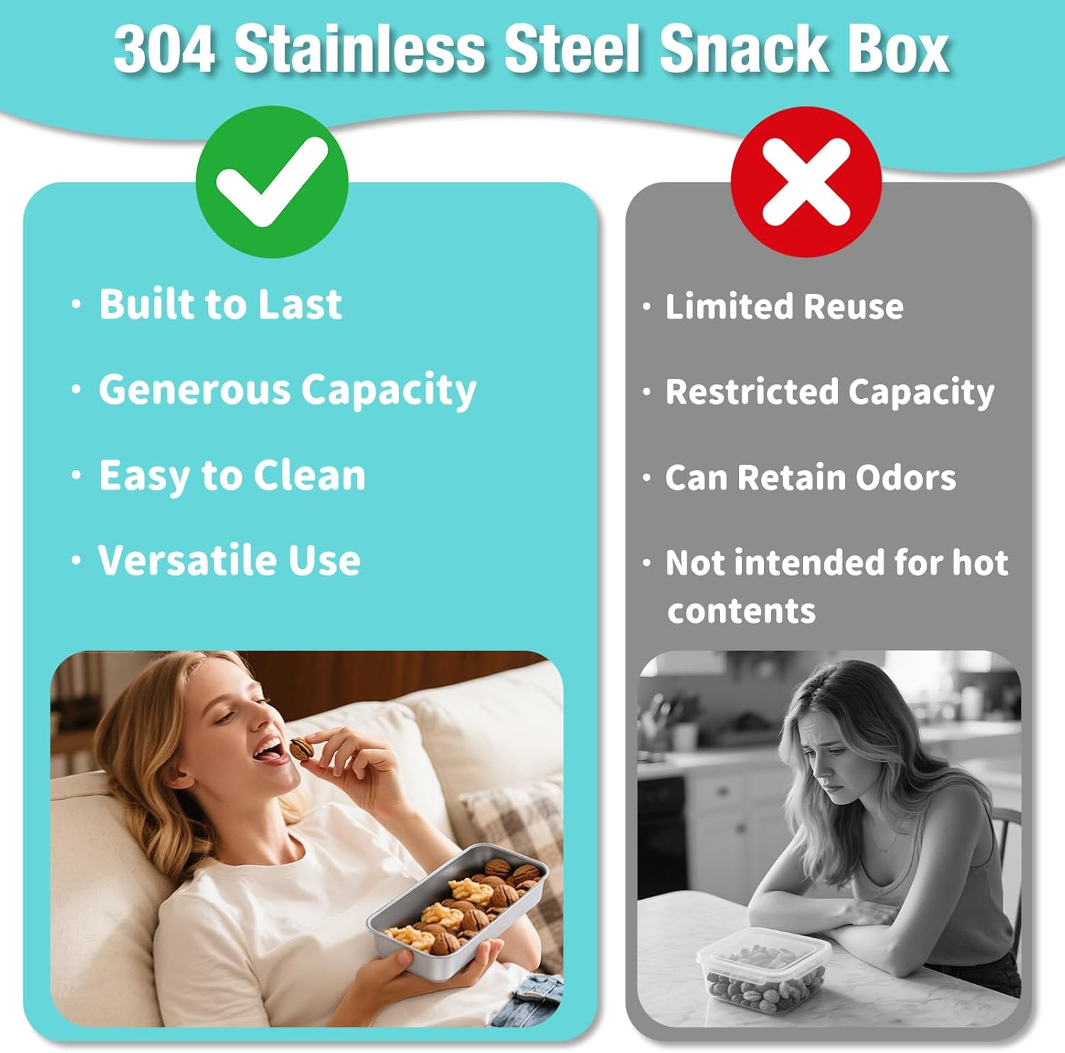 6 Pack Stainless Steel Snack Containers with Lids, 2-Compartment Bento Box, Lunch Box & Salad Dressing Container To Go, Leakproof Food Storage for Adults, Dishwasher Safe for Travel Office