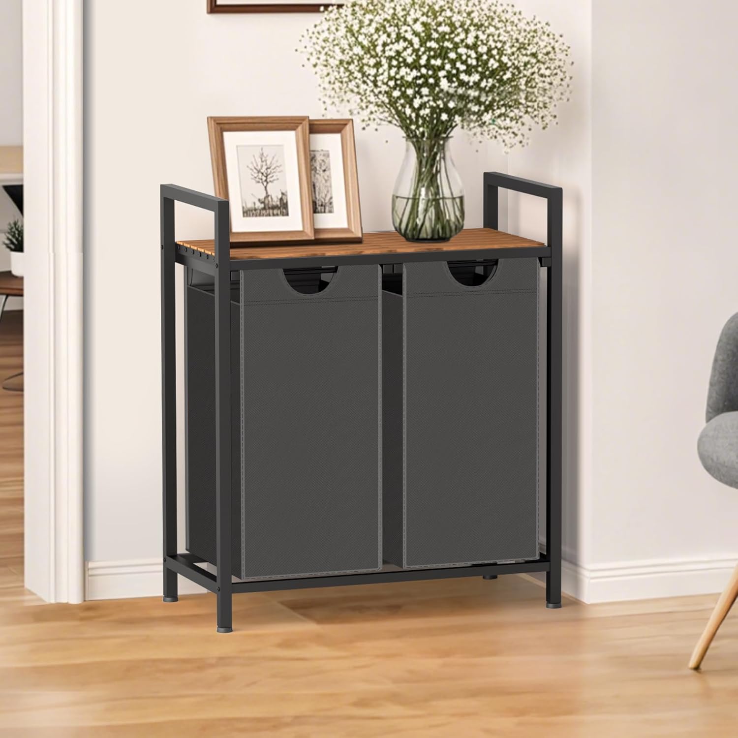 Laundry Hamper, Laundry Sorter with 2 Pull-Out Removable Oxford Fabric Bags Cloth Laundry Basket 2 x 10 Gallons (Grey and Rustic Brown)