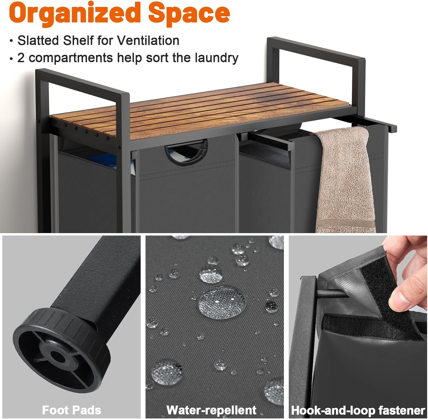 - Construction Design - With 4 adjustable feet, you will not have to worry about stability, and it is also adaptable to different spaces. Adjustable feet protect your floor from scratches. Strong steel frame and water-resistant wood top offer stable support. This laundry hamper comes with detailed instructions manual and all hardware needed, it is easy to assemble.