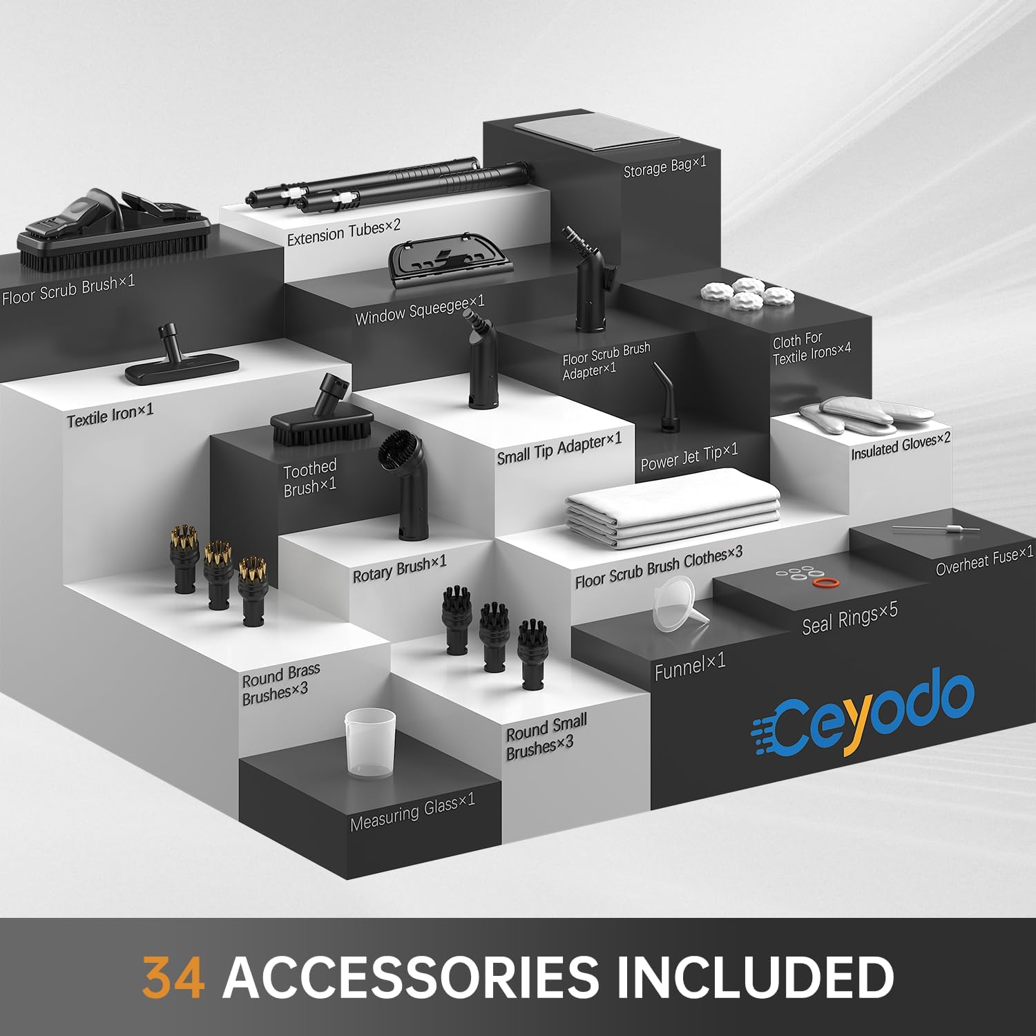 - MULTIFUNCTIONAL APPLICATIONS: Our steam cleaner is a versatile solution that adapts to every aspect of your daily life. You can rely on it to clean floors, kitchens, tiles, grout, sofas, clothes, toilets, bathrooms, kitchen sinks, appliances, range hoods, windows, grills, upholstery, cars and more.