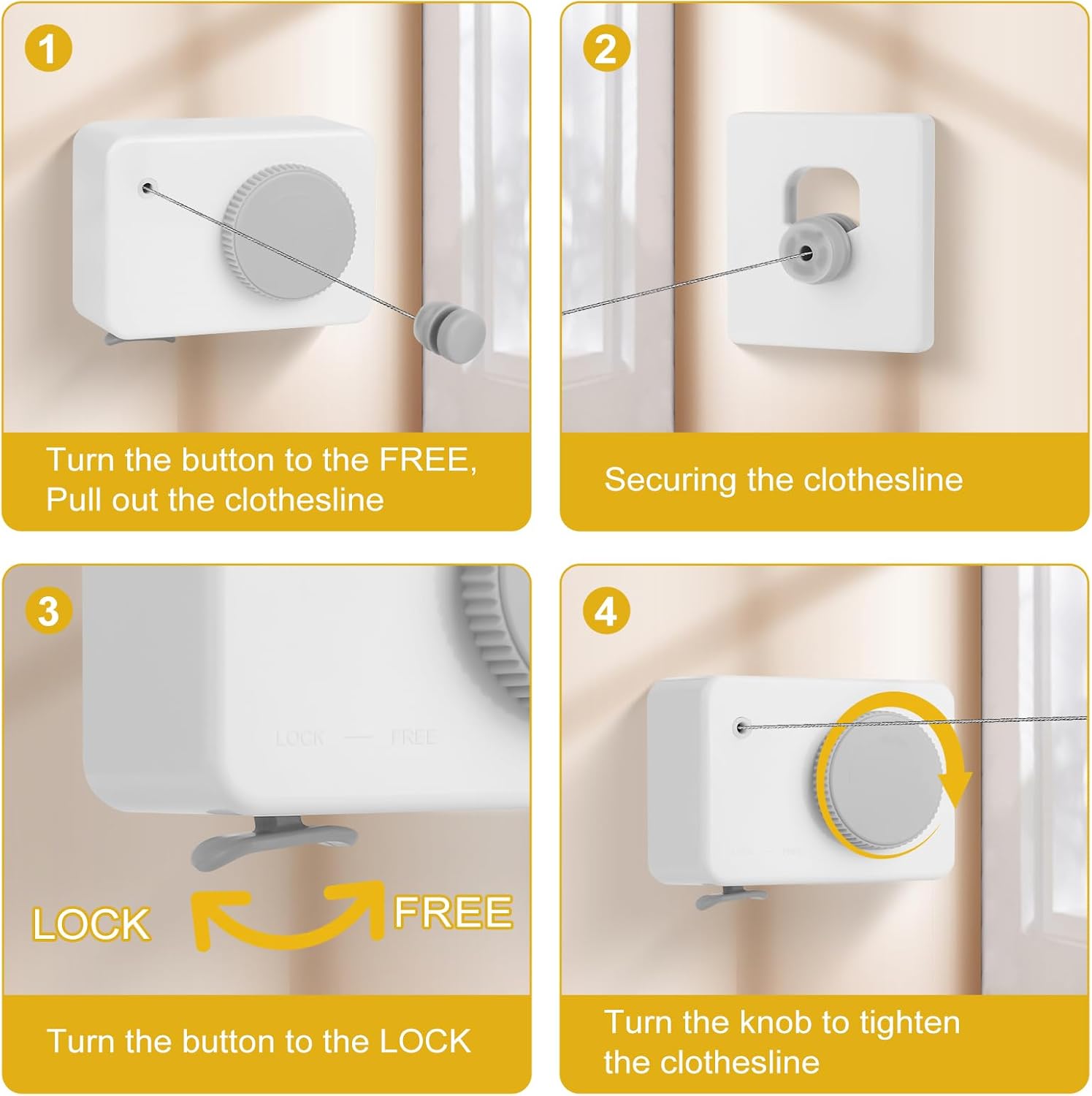 - This is an anti-sagging retractable clothesline indoor/outdoor. While keeping it locked, you can tighten the laundry line retractable by turning the knob in the middle.