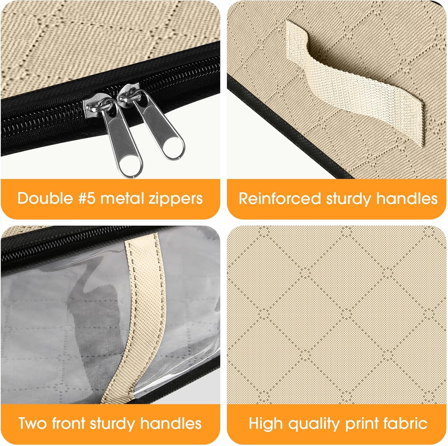 StorageRight Under Bed Storage Bins, 3-Pack 40L Foldable Fabric Storage Bags with Transparent Window, Breathable Organizer for Clothes/Blanket/Comforter/Quilts,Beige