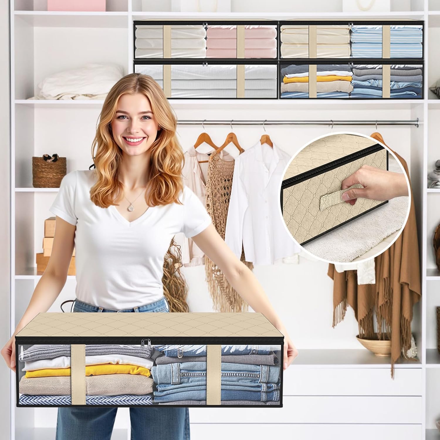 StorageRight Under Bed Storage Bins,10-Pack 40L Foldable Fabric Storage Bags with Transparent Window, Breathable Organizer for Clothes/Blanket/Comforter/Quilts,Beige