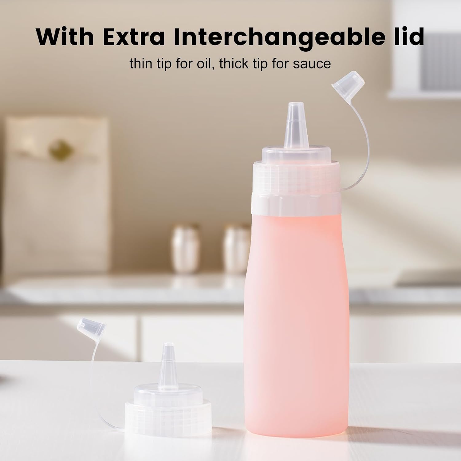 - Leak-proof Cap: condiment squeeze bottles are built with a high-tech leak-proof design. Perfect as oil bottle, syrup bottle, oil dispenser, salad dressing bottle, ketchup squirt bottle.