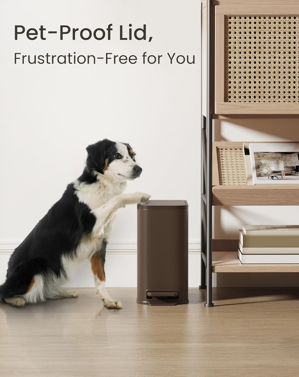 - Built to Last with Quality Materials: Crafted from sturdy stainless steel, this brown trash can resists smudges and stays looking spotless. And the strong steel pedal is built to withstand over 150,000 steps — that's more than 20 steps a day for 20 years