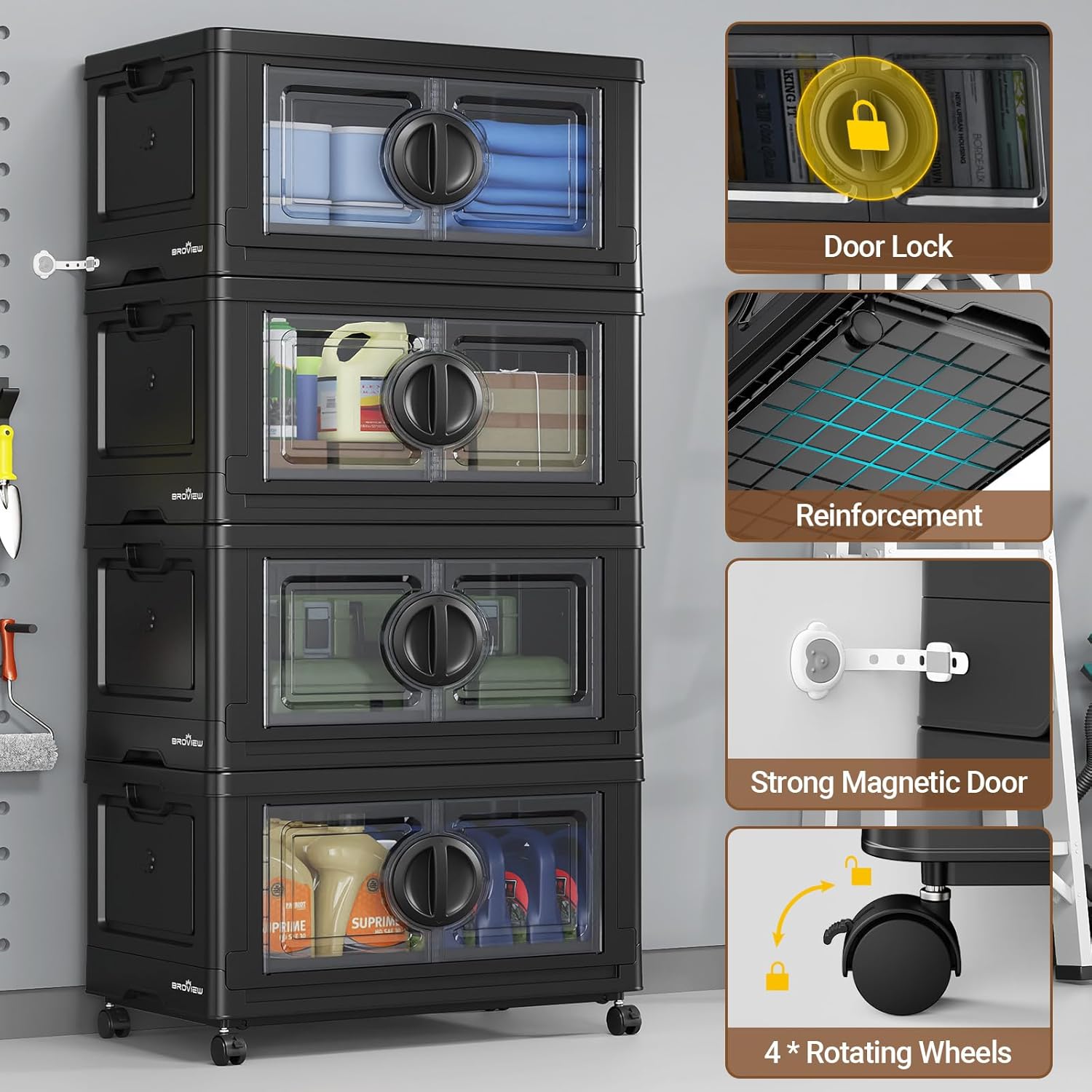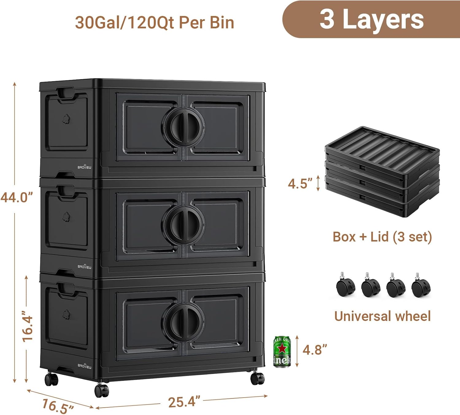 - 【Large Capacity & Premium Quality】Broview V9 storage bins assembled dimensions are 25.39'' L x 16.54'' W x 14.57'' H (per layer). Each layer can hold up to 28 gallons or 112 quarts of items and bear a maximum weight of 110lb. Crafted from high-grade PP material, our plastic storage organizers are built to withstand daily wear and tear, ensuring long-lasting durability and reliability.