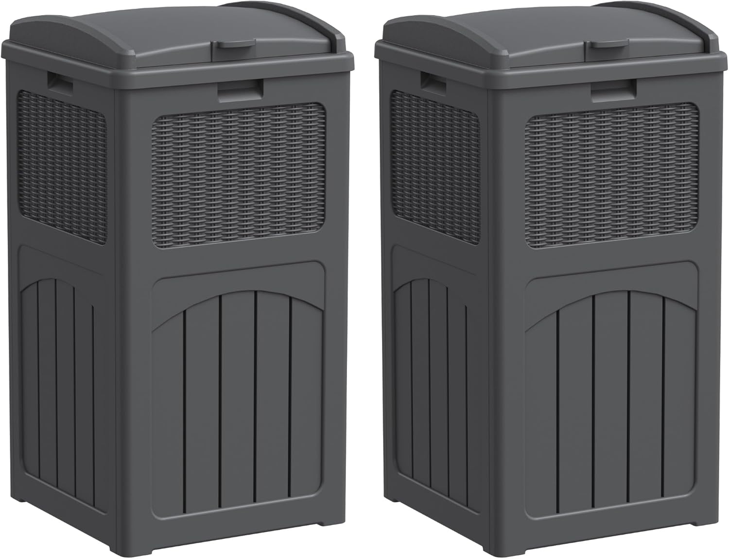 Greesum 33 Gallon Outdoor Trash Can with Lid (2-Pack), Heavy Duty Resin Garbage Bin, Waterproof & UV Resistant for Patio, Garden, Deck, Yard, Gray