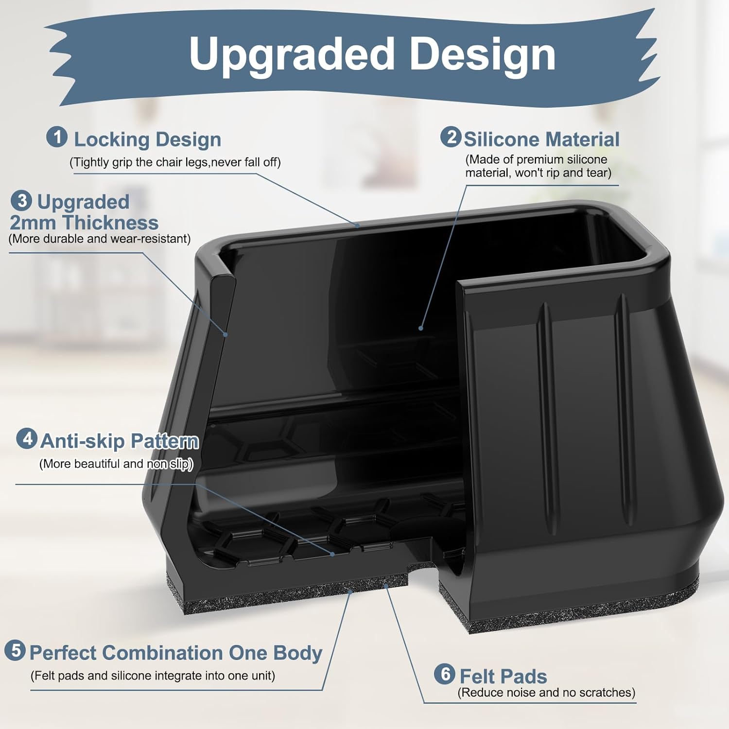 - ✅【Comprehensive Improvement】The chair leg floor protectors use special technology to combine the felt and silicone into one inseparable piece, which prevent the felt pad from falling off during use. We chose the premium quality silicone material which bonds the felt pad better, and won't tear easily when stretched.
