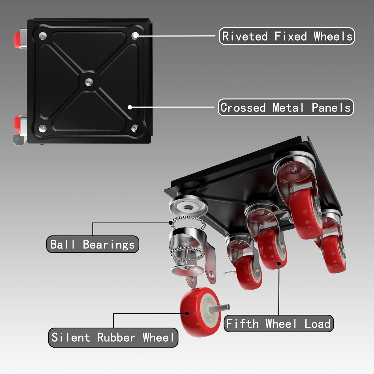 Furniture Dolly,Furniture Movers with 5 Wheels,Carbon Steel Panel Heavy Duty Dolly,Furniture Lifter with 5 360° Rotatable Rubber Universal Wheels,Maximum Load 1800LBS (Black, 4.1x4.1 in)