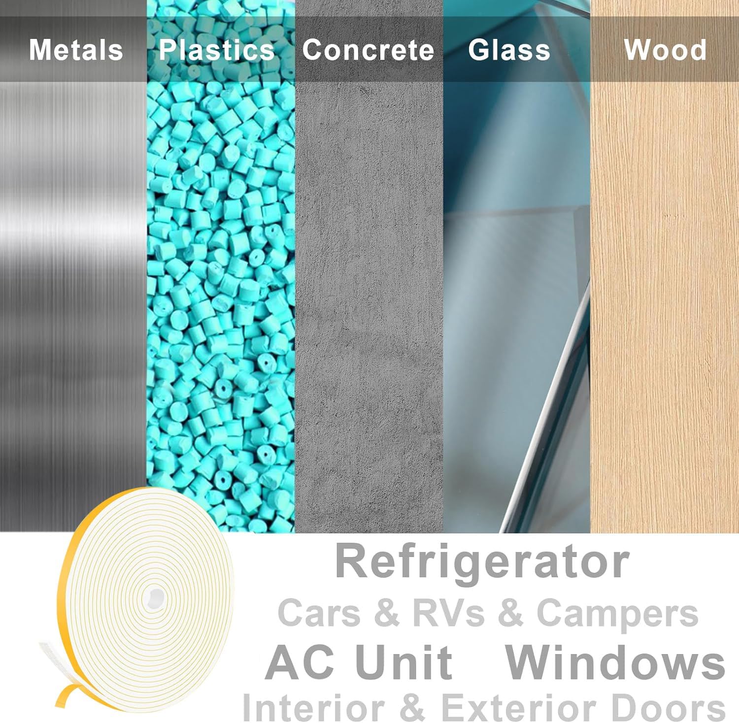 - UPGRADED GRID ADHESIVE: The high density weather stripping adopt premium strong grid adhesive, guarantees the insulation tape sticks on firmly. Weather strip is flexible and fills voids perfectly, blocking drafts, dust and noise while improving insulation
