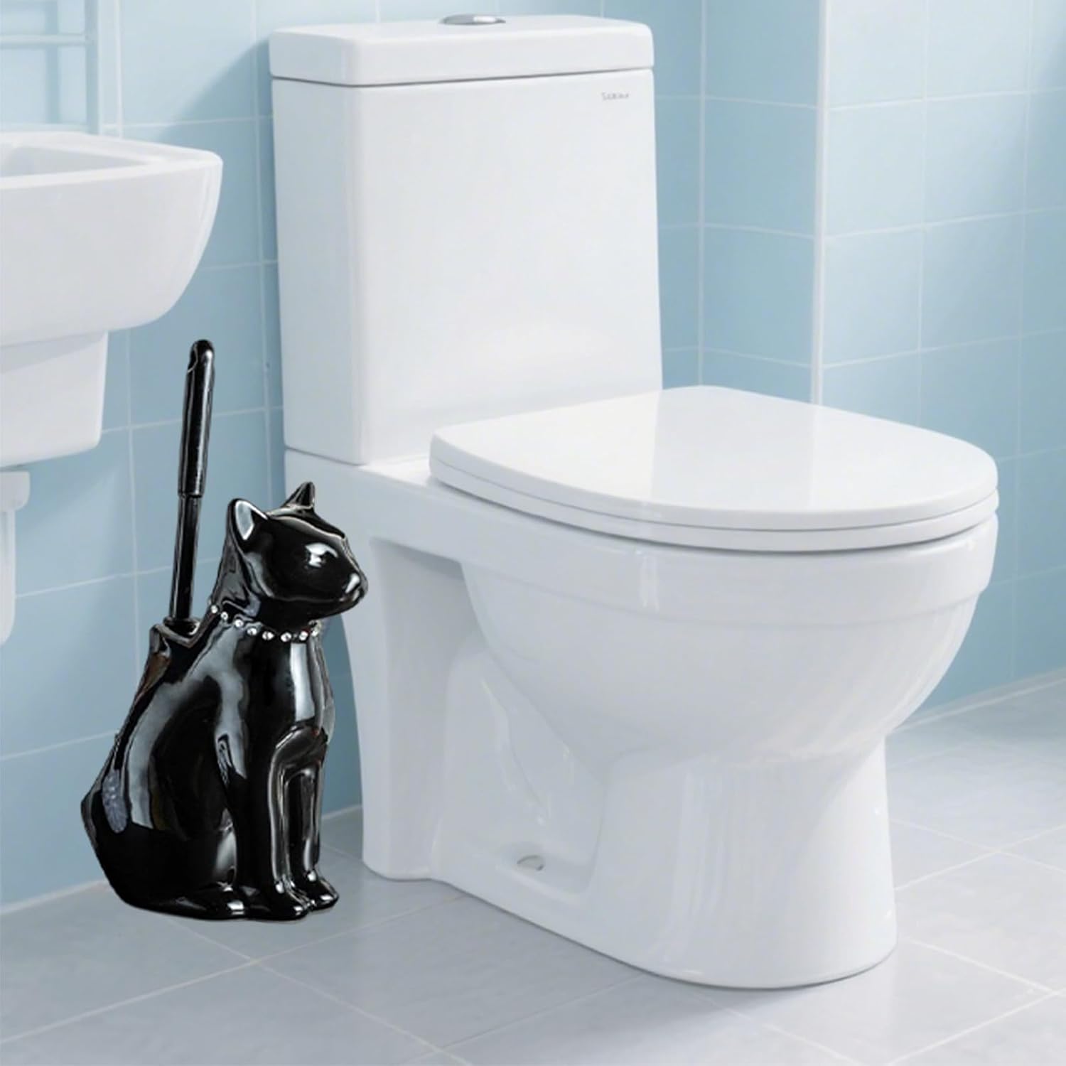 - 【Charming Cat Design】Brighten up your bathroom with this whimsical ceramic cat-shaped toilet brush set, seamlessly blending practicality with artistic flair. The adorable cat adds a playful touch to daily cleaning routines, making your space feel fresh and fun