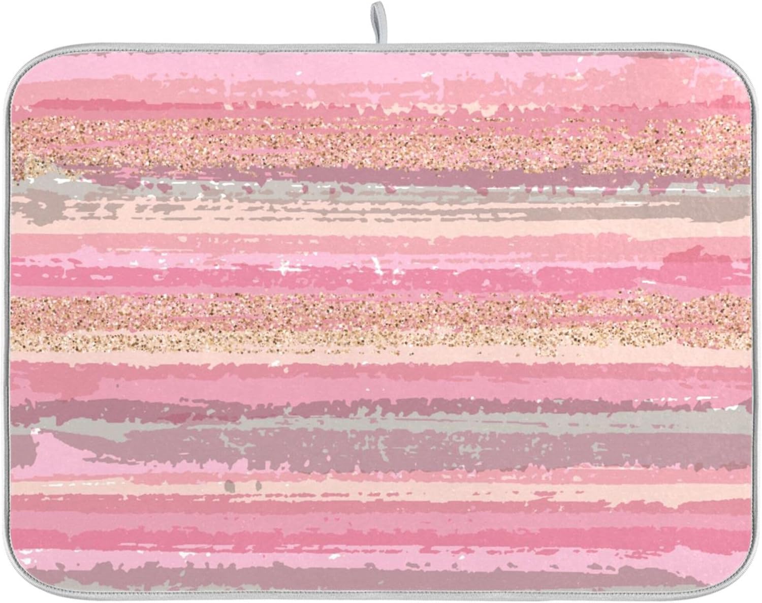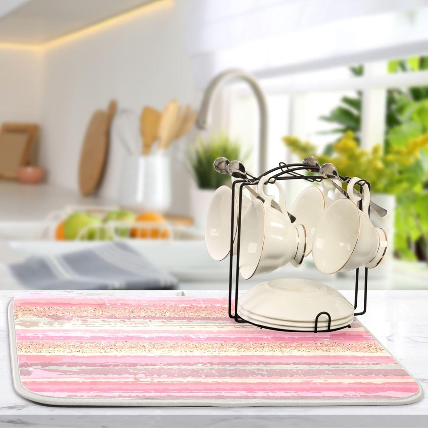 Pink Gold Stripe Dish Drying Mat for Kitchen Countertop 16x18 Rectangle Small Drying Mat Reusable Quick Dry Dish Sink Absorbent Mats Dishwasher Easy Clean Decorative Home Decor Essentials