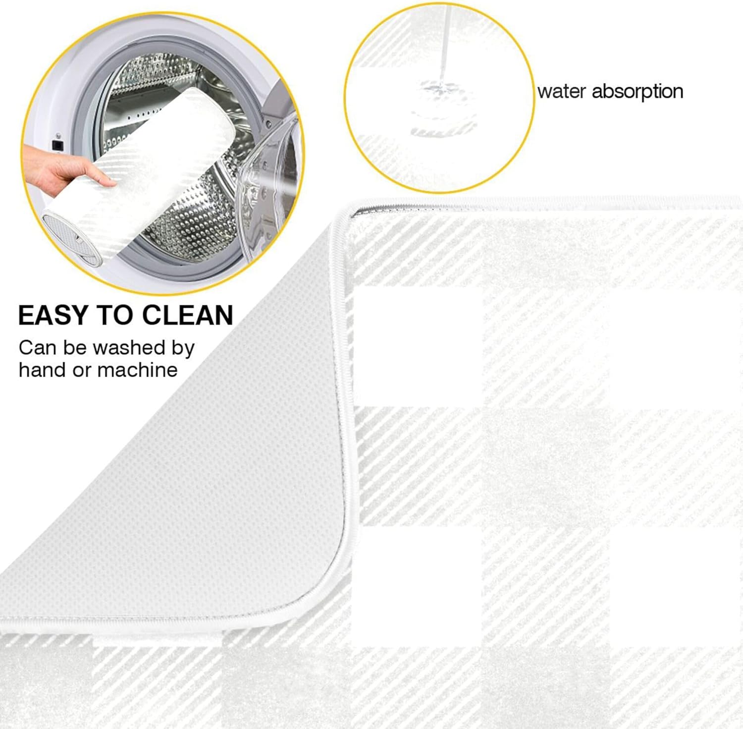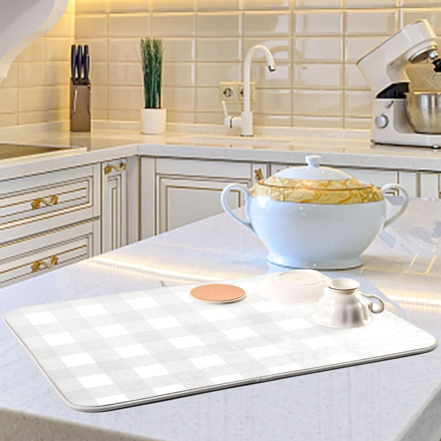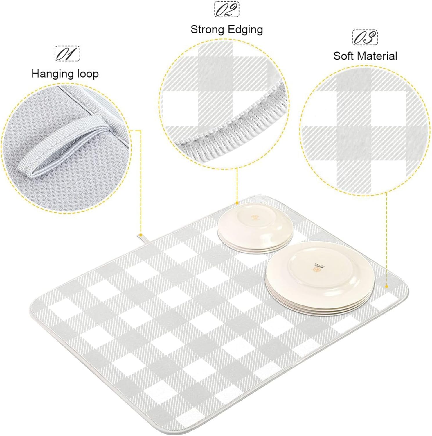 Buffalo Plaid Gray White Dish Drying Mat for Kitchen Countertop 18x24 Chessboard Rectangle Large Drying Mat Reusable Quick Dry Dish Sink Absorbent Mats Dishwasher Easy Clean Decorative Home Essentials