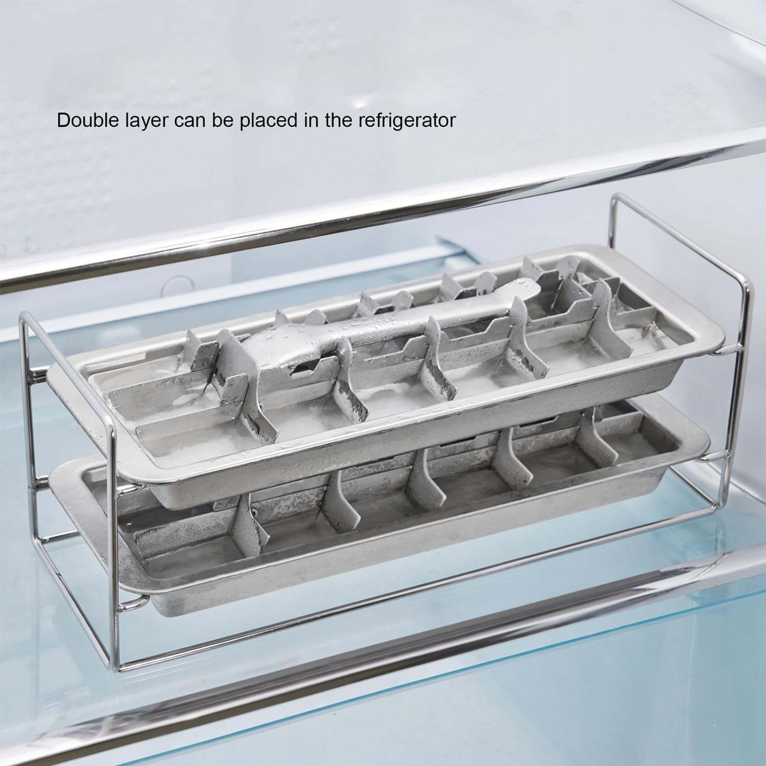 - ICE CUBE TRAYS SET: This two-piece ice cube freezer tray with lever comes with a tray and dividers (hammer and tweezers included), the dividers in the tray can make 18 individual ice cube molds. This stainless steel ice cube mold is durable, green and reusable