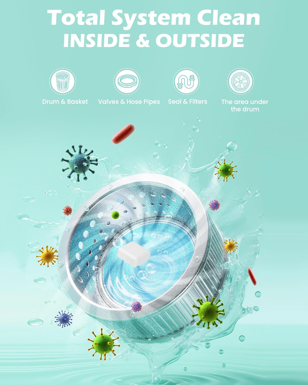 - 40% Stronger Cleaning Power: If your washer hasn’t been cleaned for years, use our highly concentrated Clean Washing Machine Cleaner. Upgraded from 11g to 15g per tablet, just one tablet effortlessly removes built-up grime, detergent residue, and pet fur. From the drum to rubber seals, hoses to valves—it delivers true deep cleaning, restoring your machine’s peak performance.