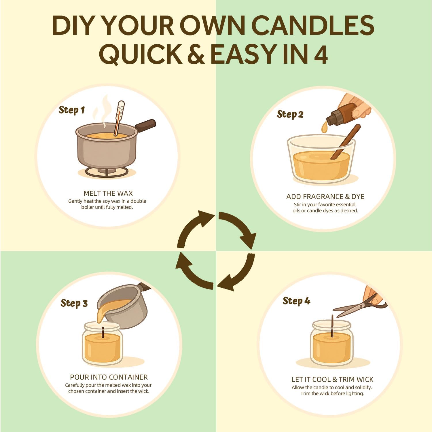 - 【Easy Candle Crafting】Ideal for both beginners and experts, our soy wax ensures a simple process—just heat, mix, and pour. Enjoy effortless, mess-free candle creations every time.