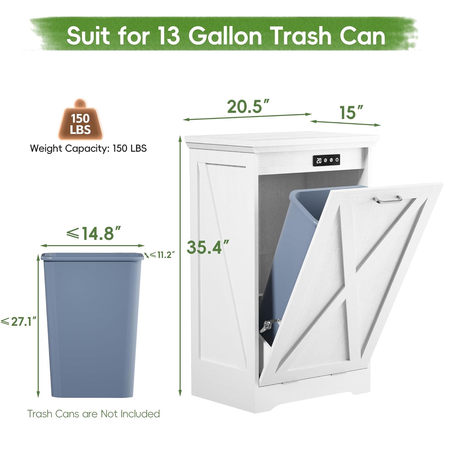 - Spacious Tilt-Out Storage Design: With dimensions of 20.5"W x 15"D x 33.5"H, this cabinet accommodates a 10-gallon trash bin, offering ample space for waste or recycling. The tilt-out design allows for easy access while maintaining a tidy appearance
