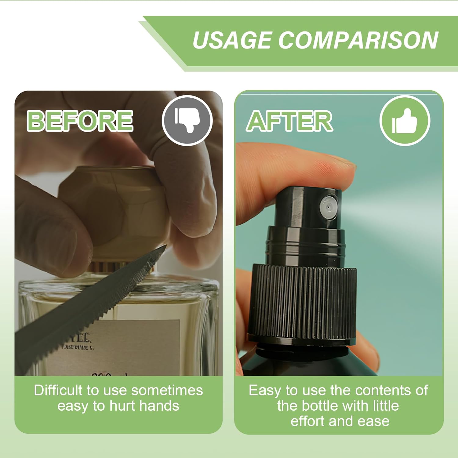 - Wide adaptability: designed specifically for essential oil bottles, toner bottles, and body oil bottles, seamlessly replacing original spray nozzle for bottles to solve the pain point of "not matching ordinary bottle types".