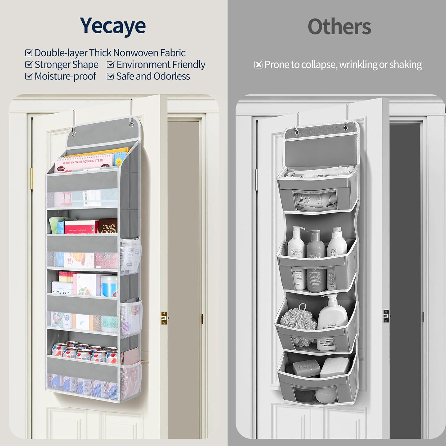 Yecaye Over The Door Organizer, Heavy Duty Hanging Organizers and Storage with 4 Large Capacity Pockets, Swing-Proof Behind The Door Storage for Bathroom Nursery Bedroom Dorm Closet, Grey