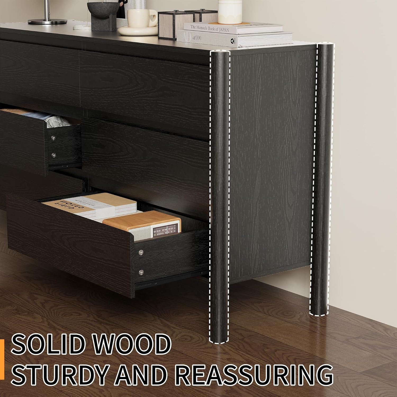 - 【Expansive & Organized Storage】The wooden dressers for bedroom features 6 large drawers, allowing each deep drawer to easily accommodate thick sweaters, bedding sets or accessory collections. The extra-wide cabinet expands the storage space by 30%, saying goodbye to clutter and achieving "visual invisible storage".