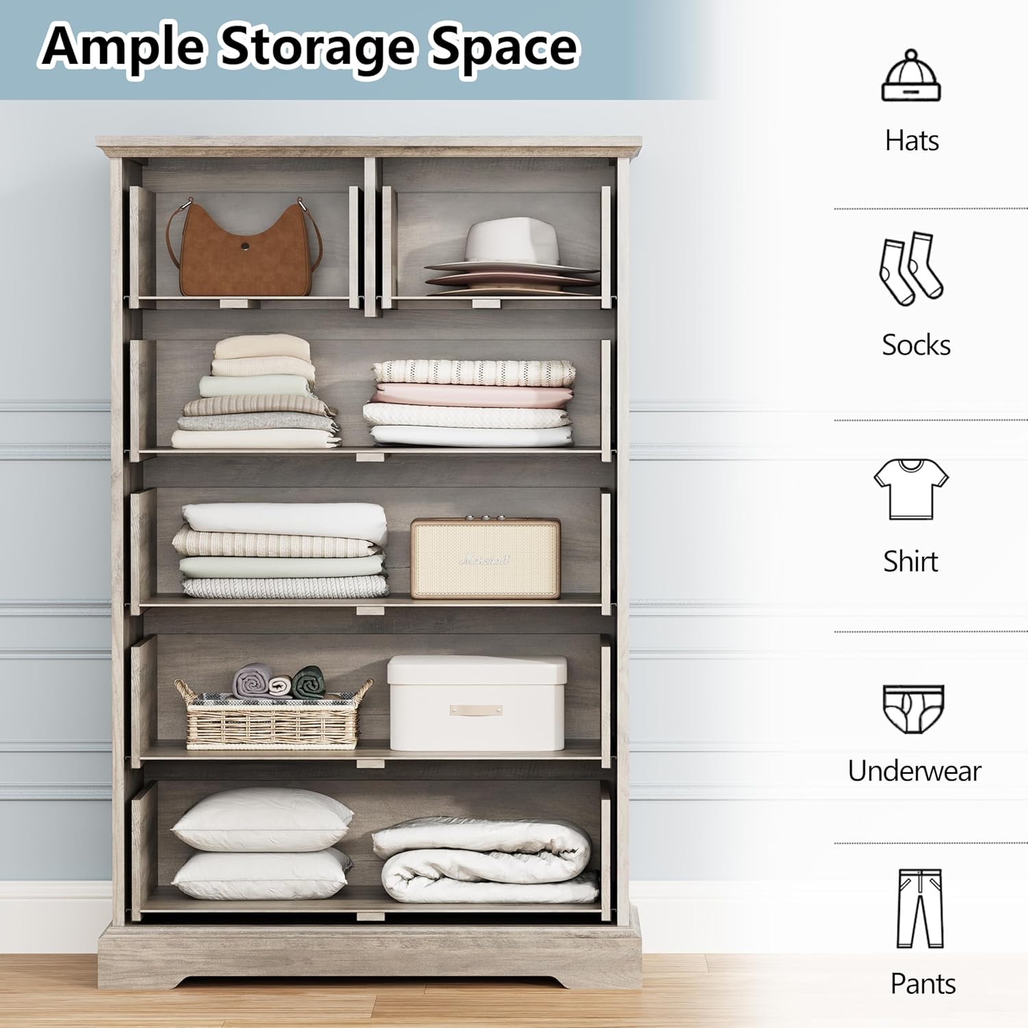 - Durable & Stable Construction: Crafted from high-density engineered wood, this sturdy tall dresser is built for durability. It features strong legs and a thick top that holds up to 180 lbs. For added peace of mind, an anti-tip device on the back panel keeps it secure, making this closet dresser, hallway dresser, or living room dresser both safe and reliable in any home.
