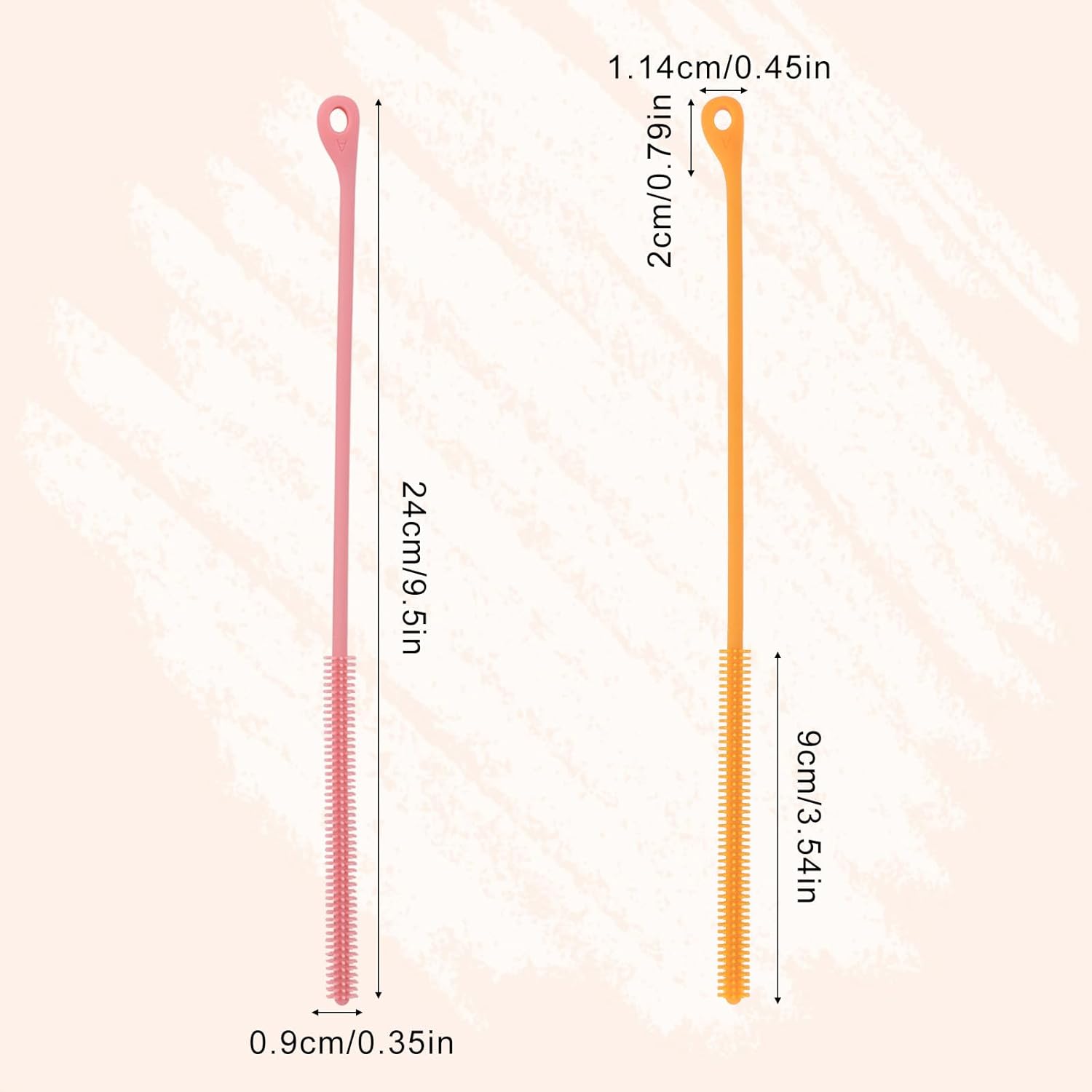 - Package Includes: You will receive 2 pieces of silicone straw cleaner brushes, each measuring about 24cm/9.44in long with a 9mm/0.35in width silicone brush head, perfect for reaching deep into straight, angled, or curved straws, tubes, or bottles for a thorough clean.