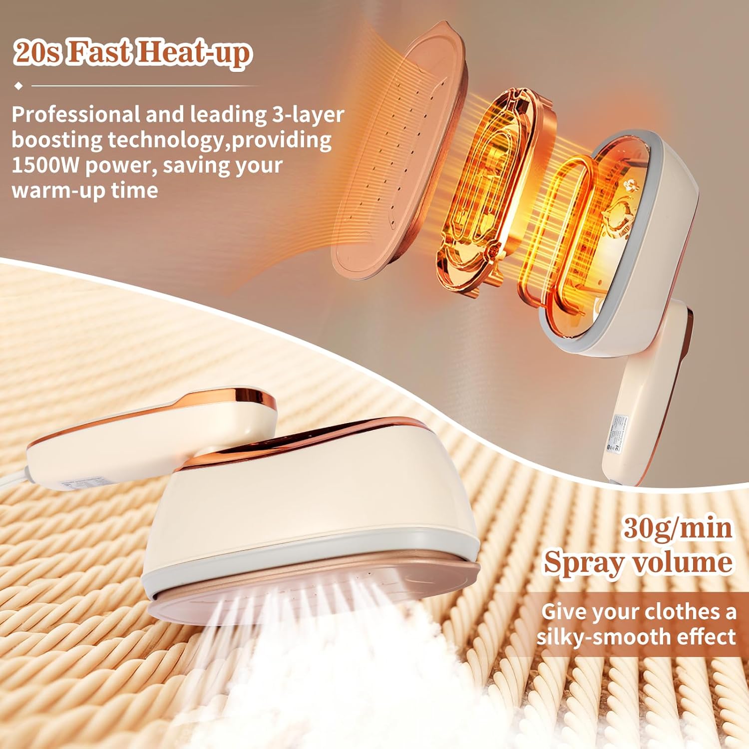 - 1. 💨 20s Rapid Heat-Up for Business Travelers :Heats in just 20 seconds with a 1500 W heater and delivers 10 minutes of continuous steam (260 mL tank), so on-the-go professionals can smooth dress shirts in hotel rooms—no downtime.