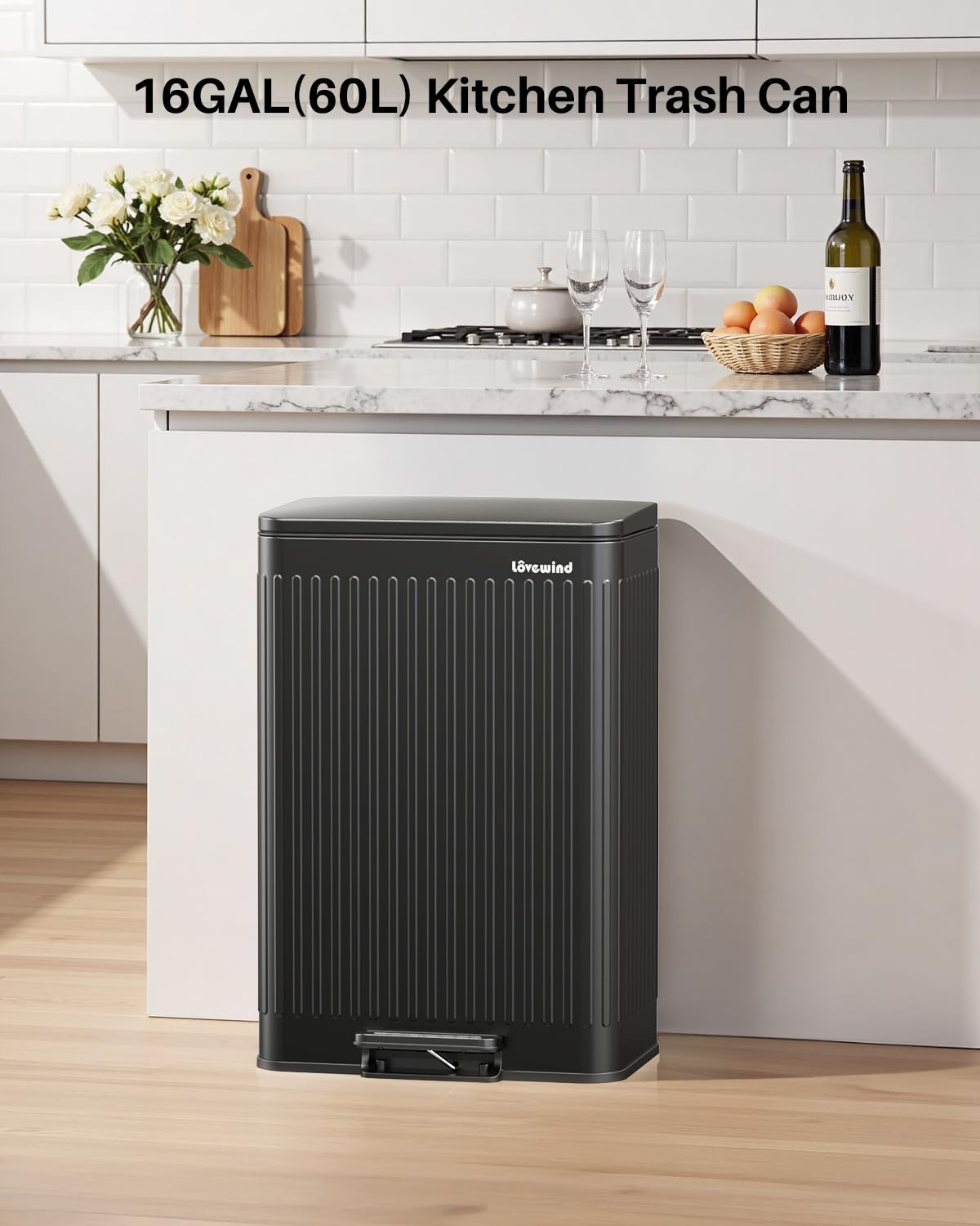 - Stainless Steel Construction & Rome-Inspired Design: Lovewind Kitchen trash can is made from high-quality stainless steel that is easy to clean. Subtle embossed pattern hides fingerprints and upgrades any decor, making it a long-lasting addition to your kitchen