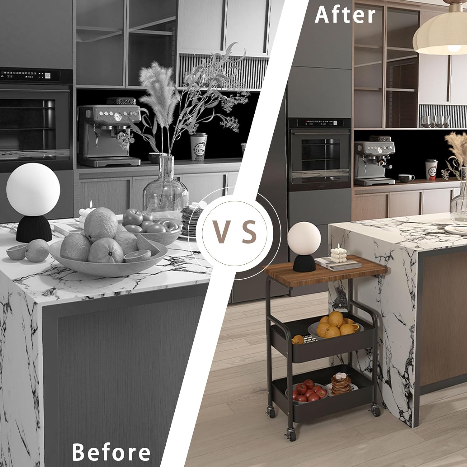 - Multifunctional Storage Cart: Our 3 tier utility rolling cart not only can be used as a kitchen storage rack, but also as a snack side table or mobile printer stand.
